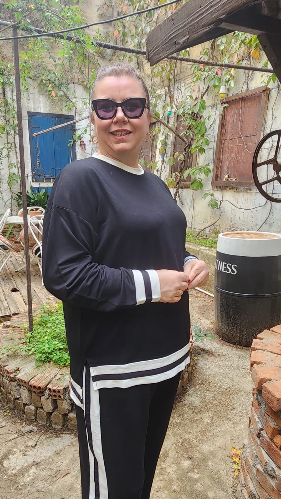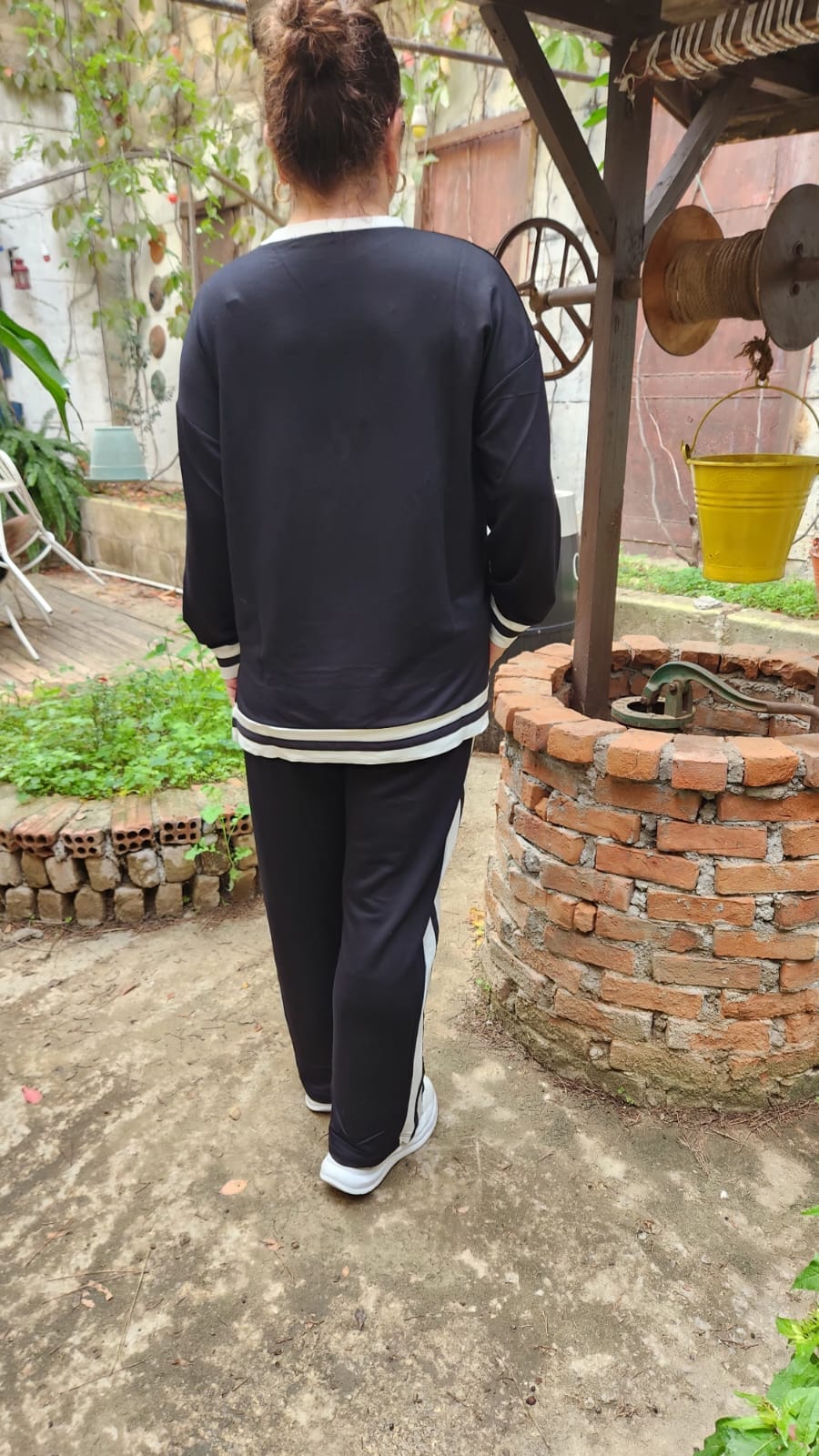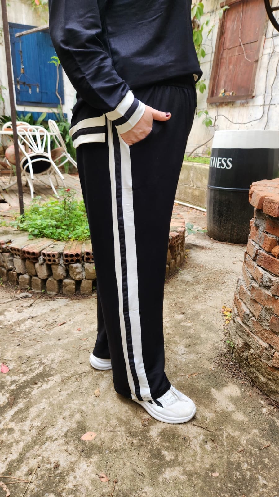 Sıfır Yaka Siyah Beyaz Şerit Detaylı Eşofman Takımı
