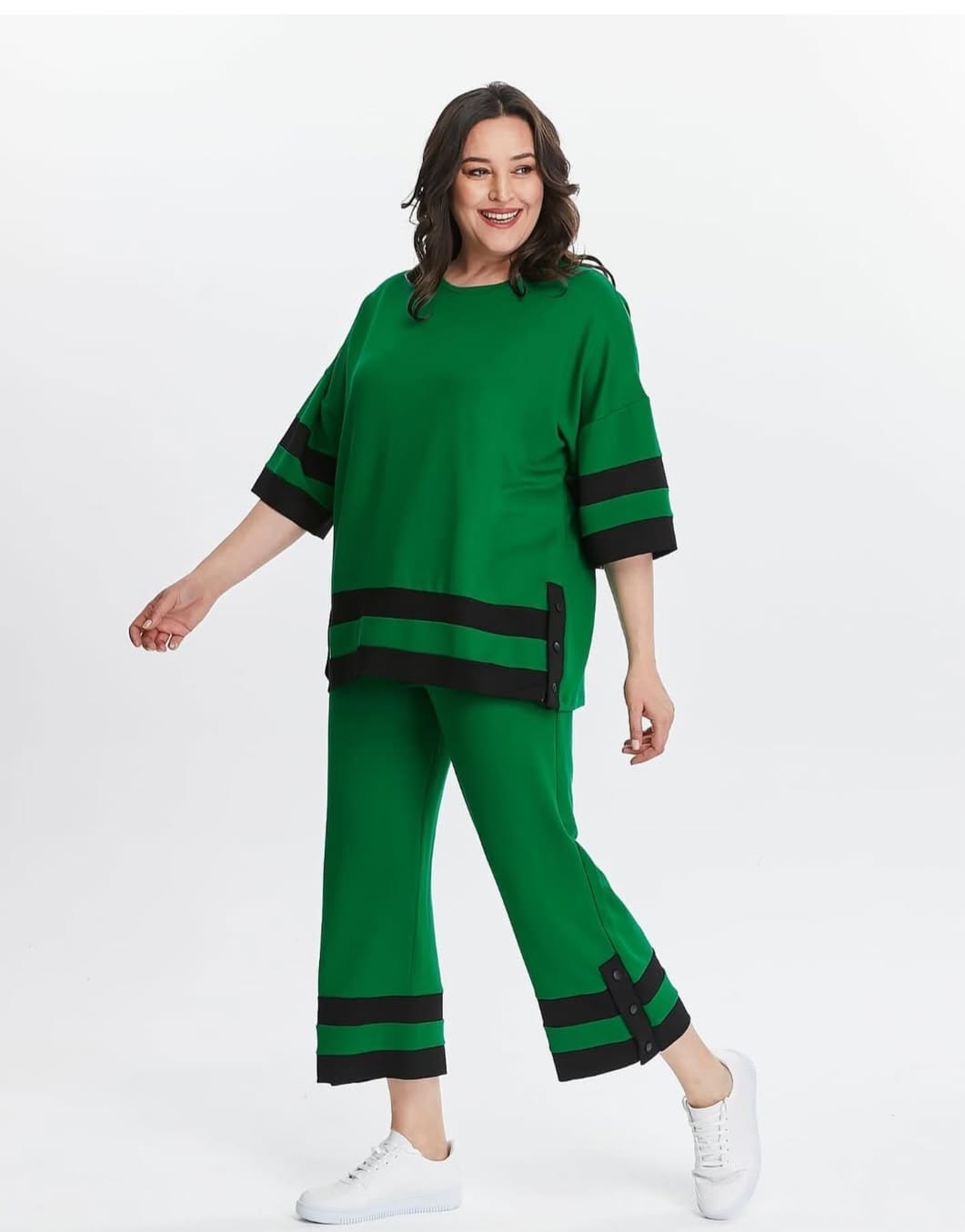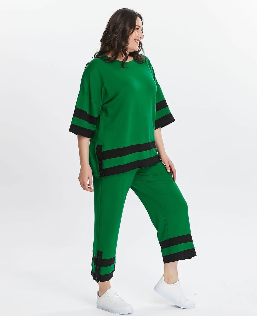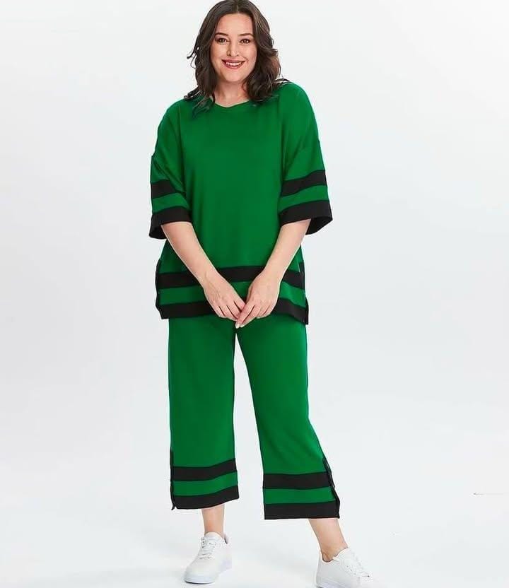 Yeşil Üzerine Siyah Şeritli  Kapri Takım
